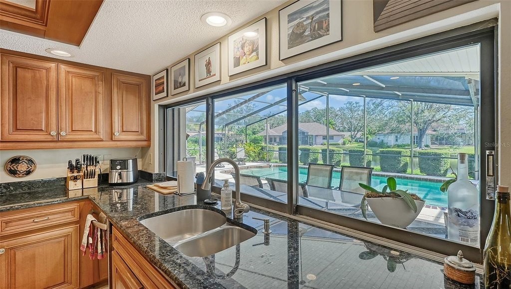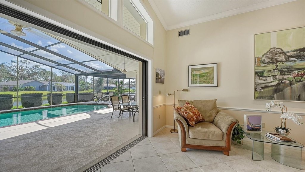 READY TO SELL! - MOTIVATED SELLERS WILL CONSIDER ALL OFFERS Move in condition home is ready for some future updates. Ample space to craft your private sanctuary. Welcome to Country Lakes, a quiet neighborhood, convenient to shopping and dining, and within the golf community of Palm Aire of Sarasota. This prime location is minutes from the UTC Mall, Sarasota-Bradenton International Airport and downtown Sarasota. Just a short trip to Lido Key, Siesta Key and Anna Maria Island beaches, this sprawling residence has a new roof (2023) and affords plenty of living space with magnificent lake views. With a living area of 3,260 square feet, this 3-bedroom, 3 bath home features large rooms including the inviting living room with a high, beamed ceiling and pocketing sliders, an office/den with French doors, and lots of storage. The kitchen opens to a beautiful family room with cathedral ceiling and a wood burning fireplace. The oversized screened lanai provides endless enjoyment of the outdoors and the full-size pool. (Pool heater new in 2022.) Optional membership in the Palm Aire Country Club offers amenities including two championship golf courses, tennis, pickleball, fitness center, dining and more. Take a look today!